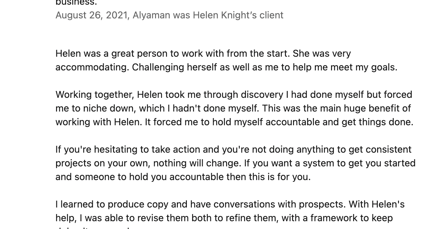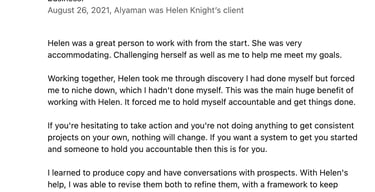 βIt was so much fun working with Alyaman and he really appreciated the structure and process i have developed to make it easy to follow so he can always bring new clients in.β