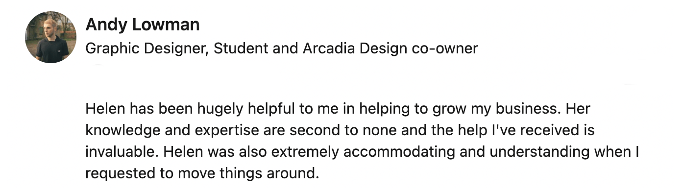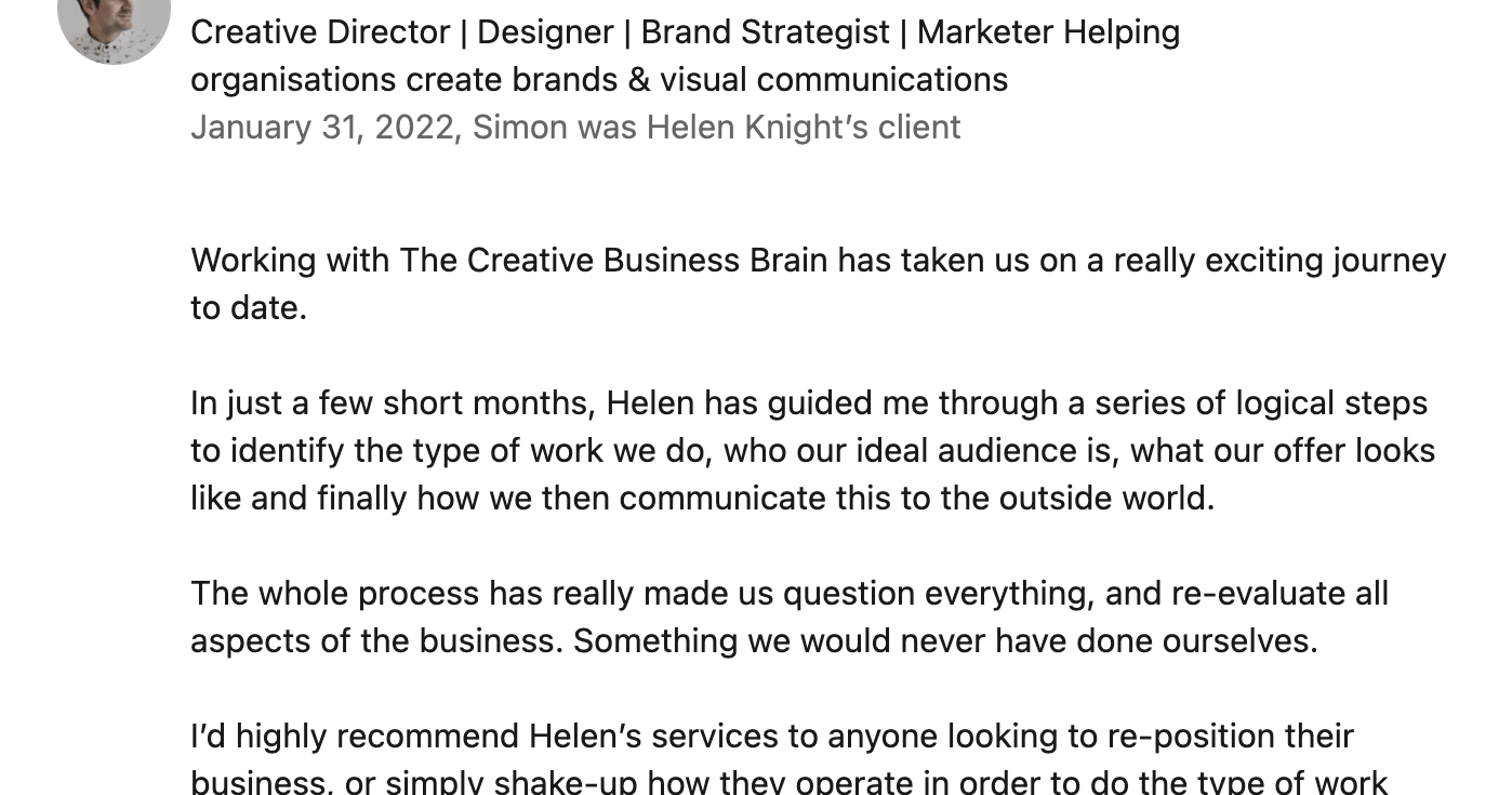 "Really enjoyed working with Simon at Bread and butter creative communications in Leeds. Exciting to hear how he gained so much from the program and it helped him to move the business forwards in a direction he is very passionate about."