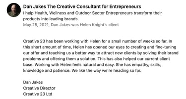 βWorking with Dan was a real pleasure. He helps Health, Wellness and Outdoor Sector Entrepreneurs transform their products into leading brands. Dan has already started to grow his team which I'm so excited about..β